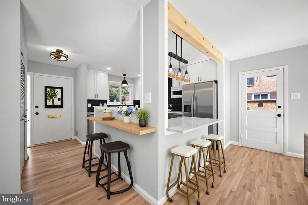 Absolutely amazing home!! Roof: 7-year-old architectural shingles. Freshly painted. Gorgeous kitchen with new cabinets, quartz countertops, and SS appliances. Remodeled baths, refinished real wood floors throughout the main level, and LVP flooring in the basement. The full walkout basement is a true highlight—flooded with natural light, it feels open and inviting rather than below grade, with options for 2 additional bedrooms depending on how you use it. Step outside to a private backyard that backs to a wooded area, providing serene green views from both levels. The expansive patio off the basement recreation room is perfect for entertaining guests. Additional features include a whole-house generator and off-street parking for up to four vehicles. Ideally located just minutes from the DC line, short drive to University of Maryland, Catholic University, and everything DC Metro area has to offer. Short walk to NW Branch Trail, which connects to a vast network of biking and walking paths—perfect for nature lovers and biking enthusiasts. This home truly combines comfort, convenience, and style.